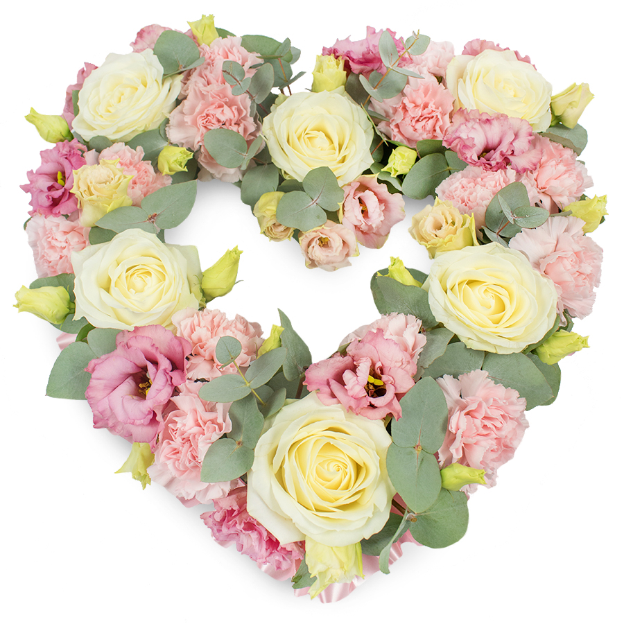 Honor and remember with our graceful memorial bouquet, thoughtfully designed to reflect your heartfelt emotions. This stunning arrangement includes white roses, pink carnations, pink lisianthus, and eucalyptus leaves, all meticulously hand-selected to ensure maximum freshness and beauty.